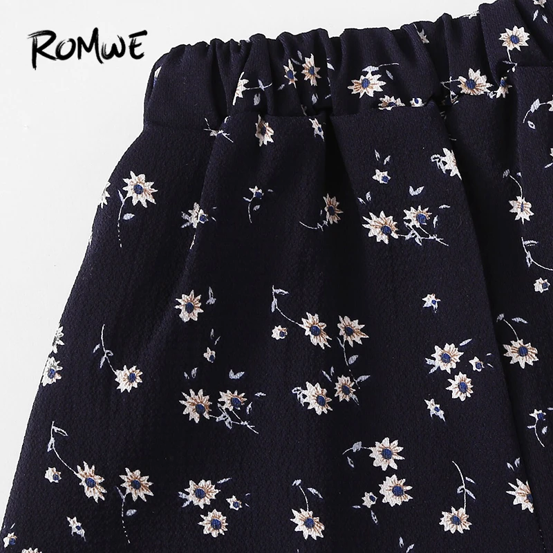 Images of ROMWE Navy Off Shoulder Floral Frill Crop Top With Shorts Two-Pieces Sets Women Bohemian Beach Style Summer Short Co-ords :