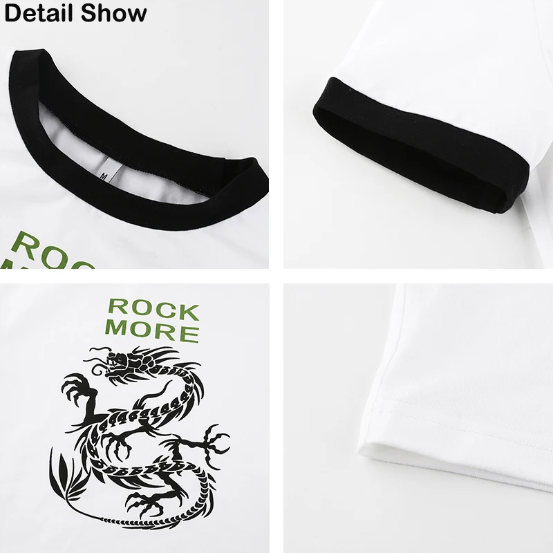 Promo Rapwriter Chinese Style Dragon Print White T shirt Women Skinny Crop Top Short Sleeve Casual SummerTee Casual Elastic T-shirts