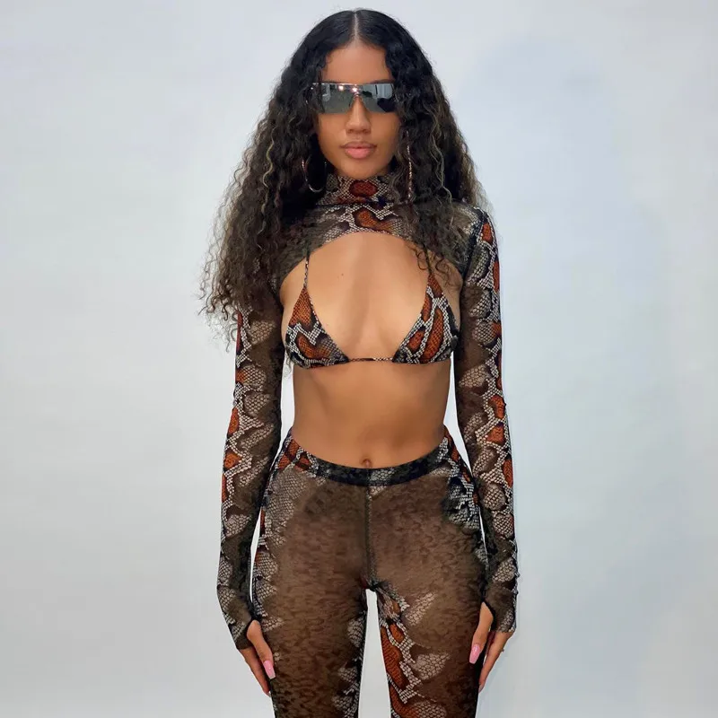 Images of SEASONS Snake Print Extra Crop Top Bra Leggings with Socks 3 Pieces Set Autumn Winter Women Sexy Club Party Outfits ASSU80331 :