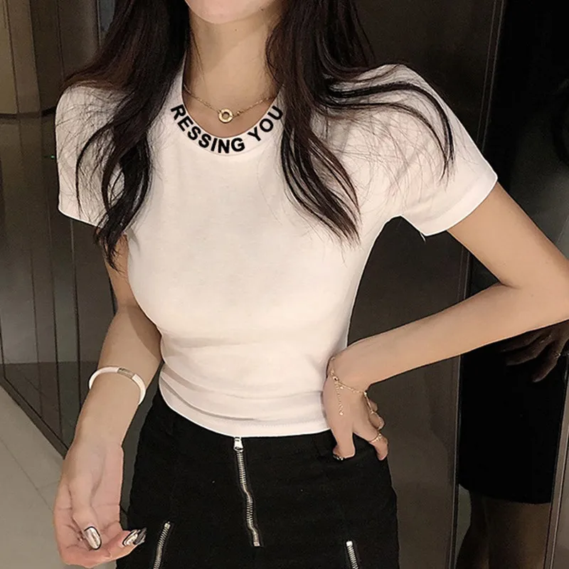 Best Offer New Women Classic T shirt EASE Print Short-sleeve t-shirt Female Trend Letter Casual Tops Short Sleeve Harajuku Top DropShipping