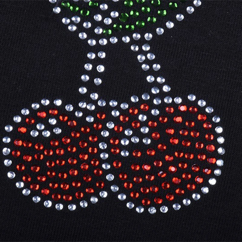 New New Women's Sexy Sleeveless Off Shoulder Cherry Pattern Diamond Fluffy Top Ladies Girls Slim Fit Black Clubs Tank Top