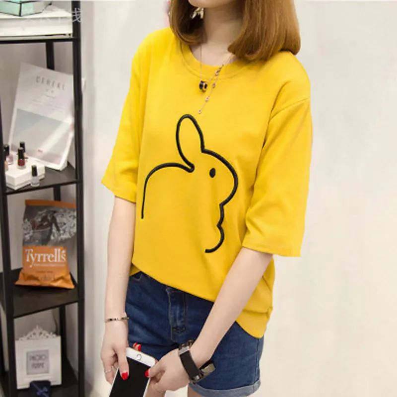Buy Basic women's T-shirt summer Sailor Moon short-sleeved fashion bimodal lazy fun tops friends gram style loose loose cute rabbit