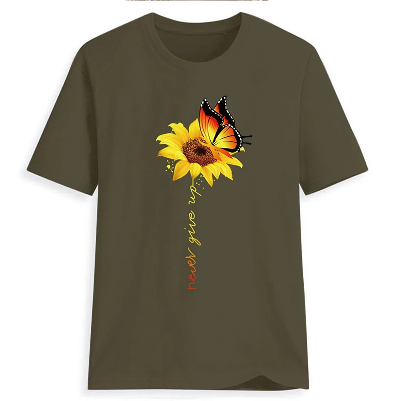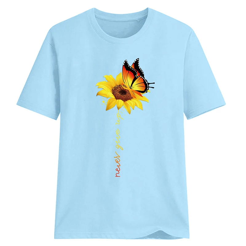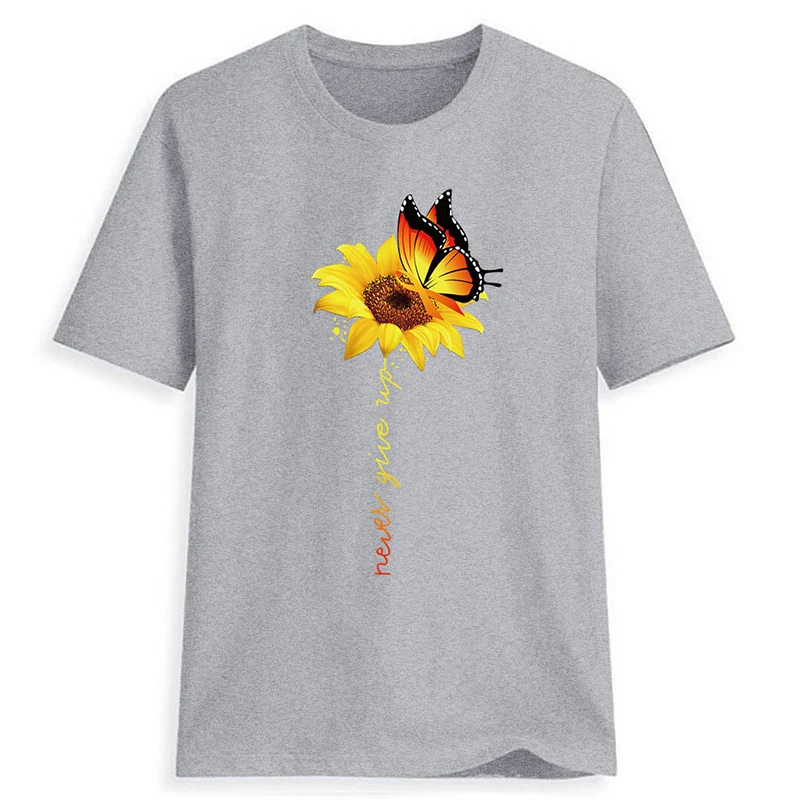 New Butterfly Sunflower Women's T-shirt Cotton Print Graphic White Tshirt Female Casual Aesthetic Black T Shirt Green Harajuku Top