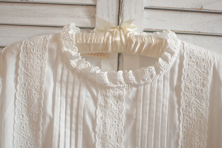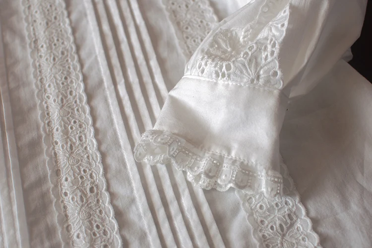 Images of Free Shipping 2020 Spring Autumn New Fashion 100% Cotton Lace Tops For Women Long Sleeve Loose Loose Tees White :