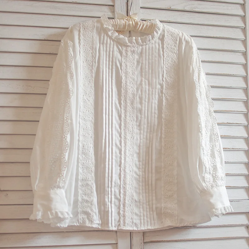 Best Offer Free Shipping 2020 Spring Autumn New Fashion 100% Cotton Lace Tops For Women Long Sleeve Loose Loose Tees White