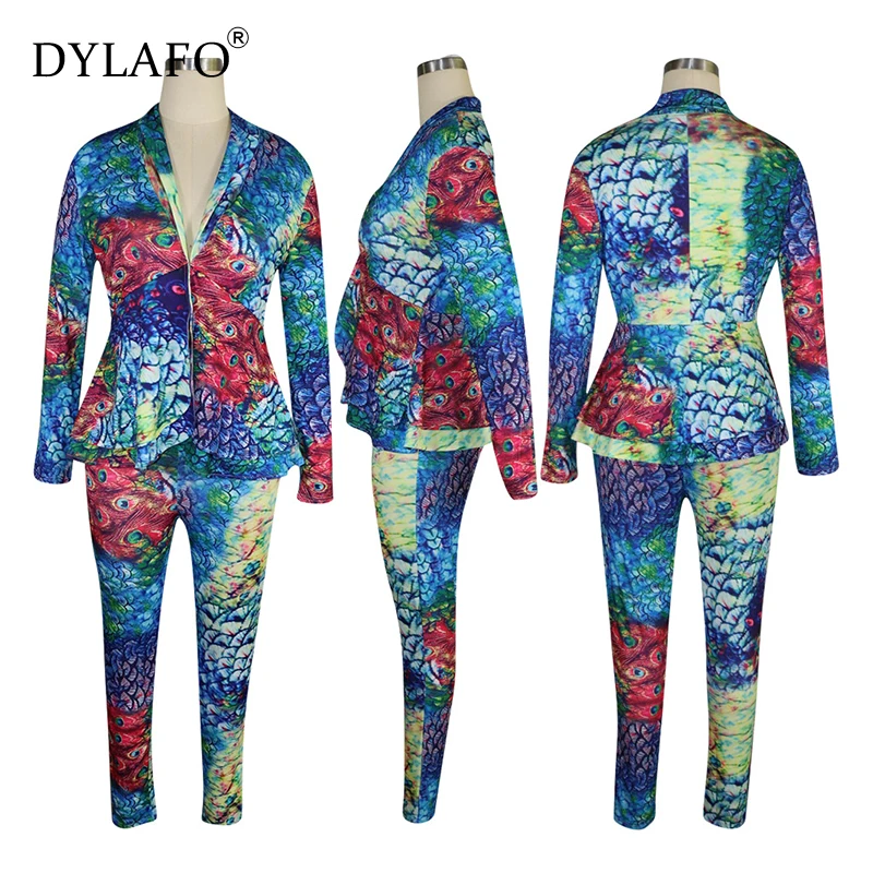 Images of Leopard Print Two Piece Set Women Rave Festival Clothing Blazer Top and Pant 2 Piece Fall Winter Matching Sets Sexy Club Outfits :