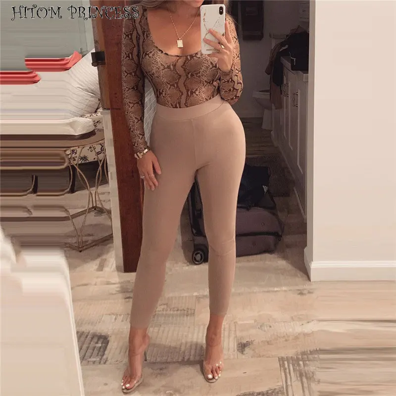 New HITOM PRINCESS Mesh Leopard Sexy Bodysuit Women Long Sleeve Bodycon Skinny Rompers Womens Jumpsuit Snake Print Playsuits Party
