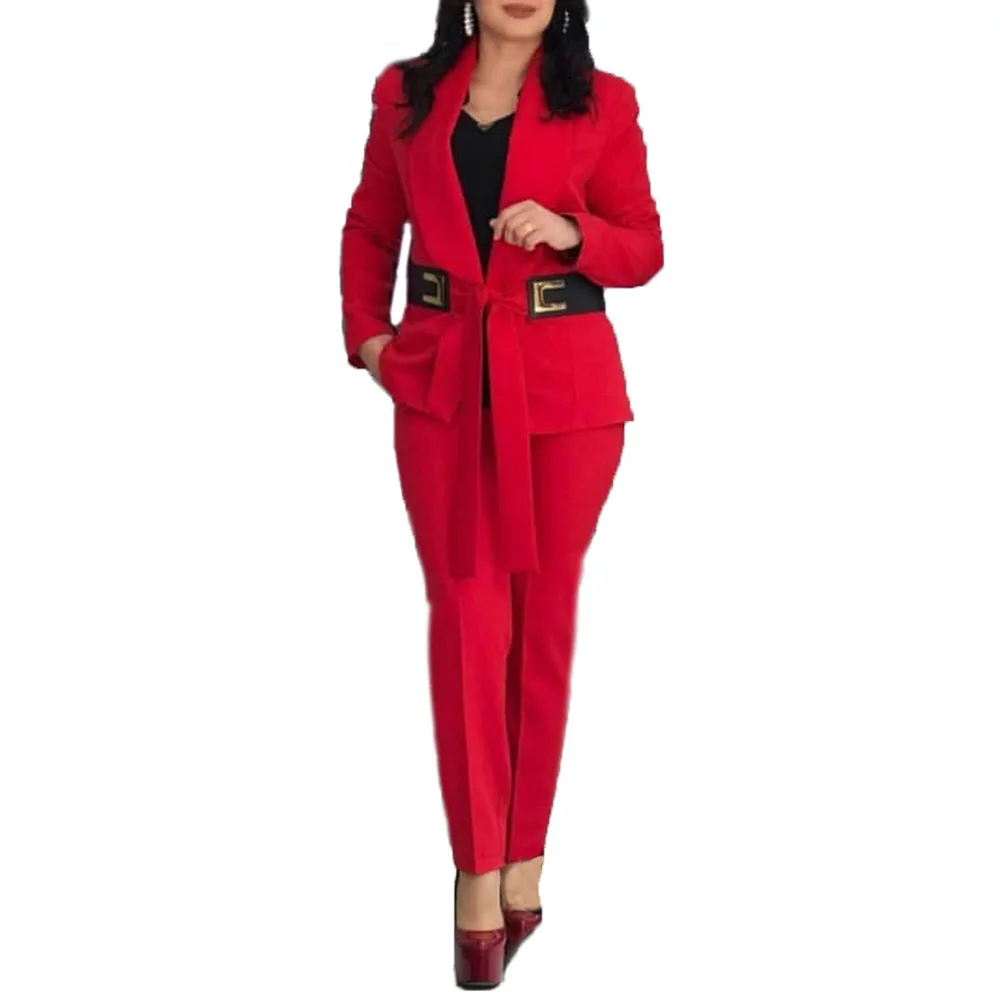 Best Offer Women Spring Fall Women Two Piece Sets Office Ladies Business Blazer Pants Suits Feminino Female Blazer Suits Plain Work Wears