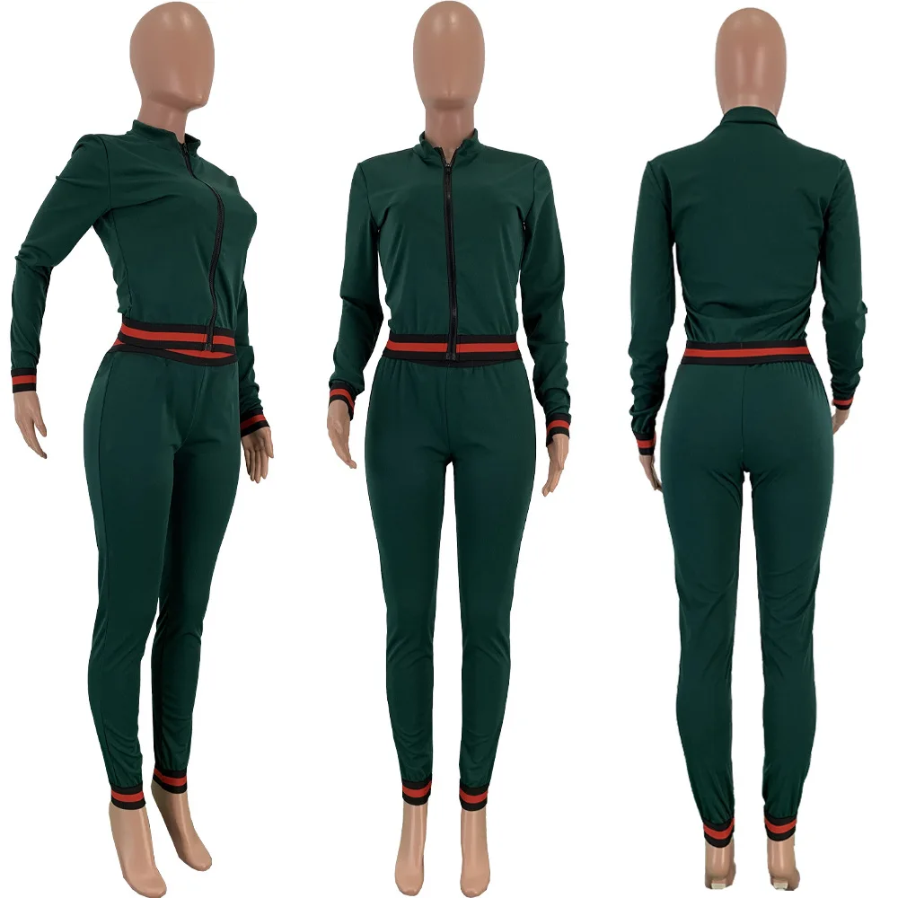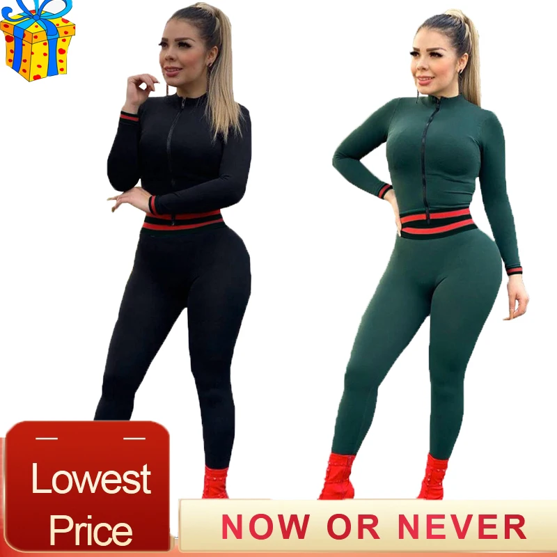 Best Offer Fitness jogging femme 2020 women two piece outfits zipper top and pants survetement femme Slim solid color women set clothing
