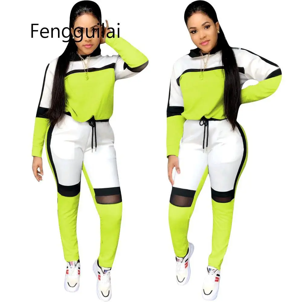 Images of 2020 Autumn Winter Women Long-sleeved Sweater Top Joggers Pants Sport Suit Two Pieces Set Fashion Sportswear Tracksuit Outfit :