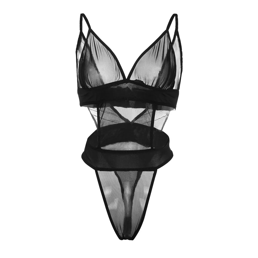 Images of Sexy V-neck Lace Bodysuit Women Sleeveless Mesh Transparent Camisole Body Suit Feminino Fashion Plus Size Skinny Bodysuits S-3XL :