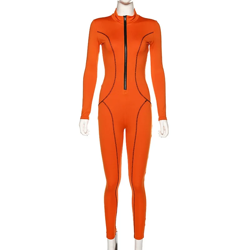 Images of Fitshinling Workout Casual Long Playsuit Jumpsuit Women 2020 Spring Zip-Up Fitness Romper Push Up Orange Sexy Sports Jumpsuits :