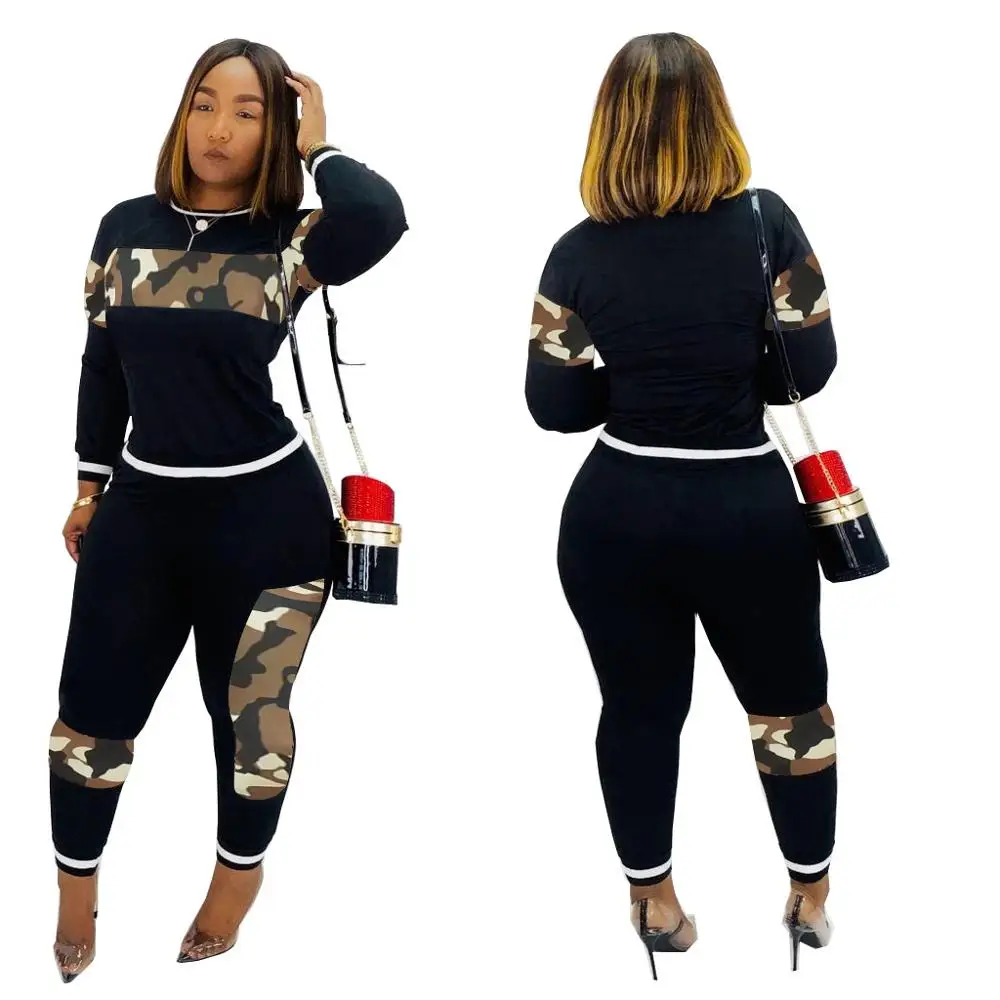 Promo Spring Leopard Print Splicing Women Set Casual Long Sleeve O Neck Sweatshirt Tops Tee Pencil Pants Suit Two Piece Set Tracksuit