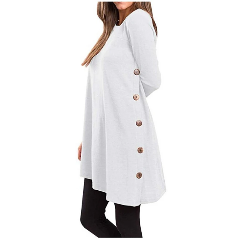 Images of 2020 Fashion Autumn New Long-Sleeved Irregular Skirt Buttons Sweater Solid Long Tops Simplee Sweatshirts Women'S Sweaters Hot :