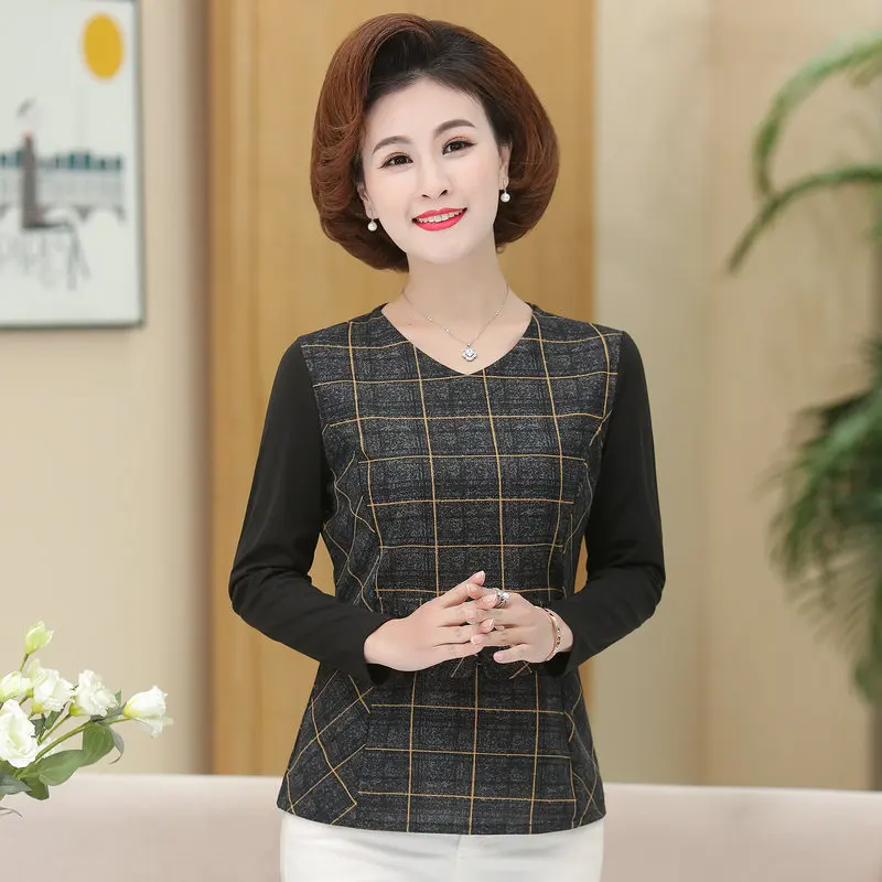 Images of 2020 Spring Women Elegant Plaid Blouses Red Yellow Checked Pattern Patchwork Smart Casual Tops Middle Aged Woman Outfits New :