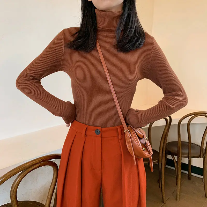 Images of Autumn Winter Womens Sweaters Stretch Knitted Turtleneck Sweater Warm Pullover Tops Jumper Slim Fasion Pull Femme Sweters :