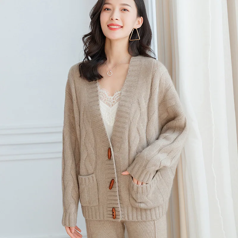 Get this 100% Cashmere V-Neck Single Breasted Women's Knitted Cardigans Office Lady Solid Thick Warm Sweaters for Women winter with limited time discount by pressing the button below