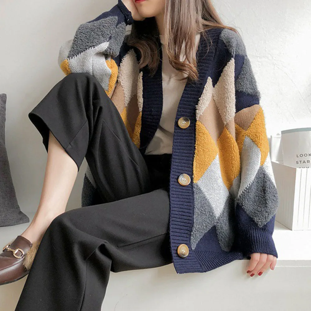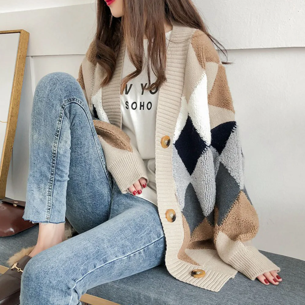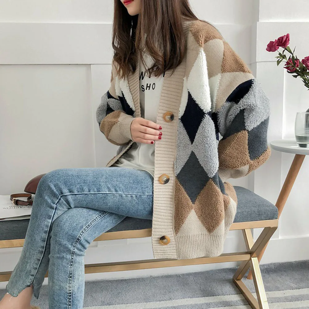 Get this Casual Oversize Plaid Cardigan Sweater Femlale Thick Warm Korean Knitted Coat Loose Outwear Knitwear Spring Winter jersey mujer with limited time discount by pressing the button below