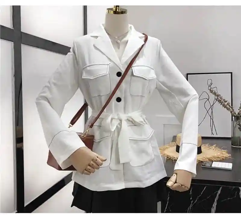 Sale New Slim Jacket All Match Korean long belt Elegant Office Lady Suit top pocket stylish women outwear