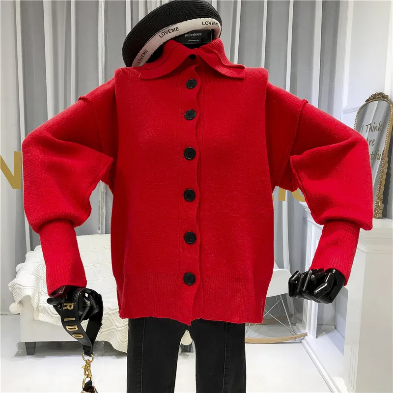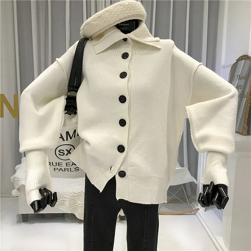 New Designer Warm Knitted Sweater for Women Turtleneck High Street Single Breasted Solid Fashion Pullover Women New Arrival Sweaters