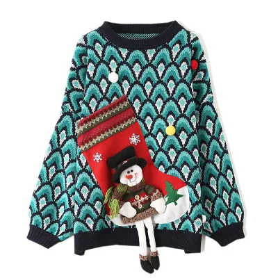 Promo Fashion spring and autumn new loose cartoon Christmas balls round neck knit sweater women