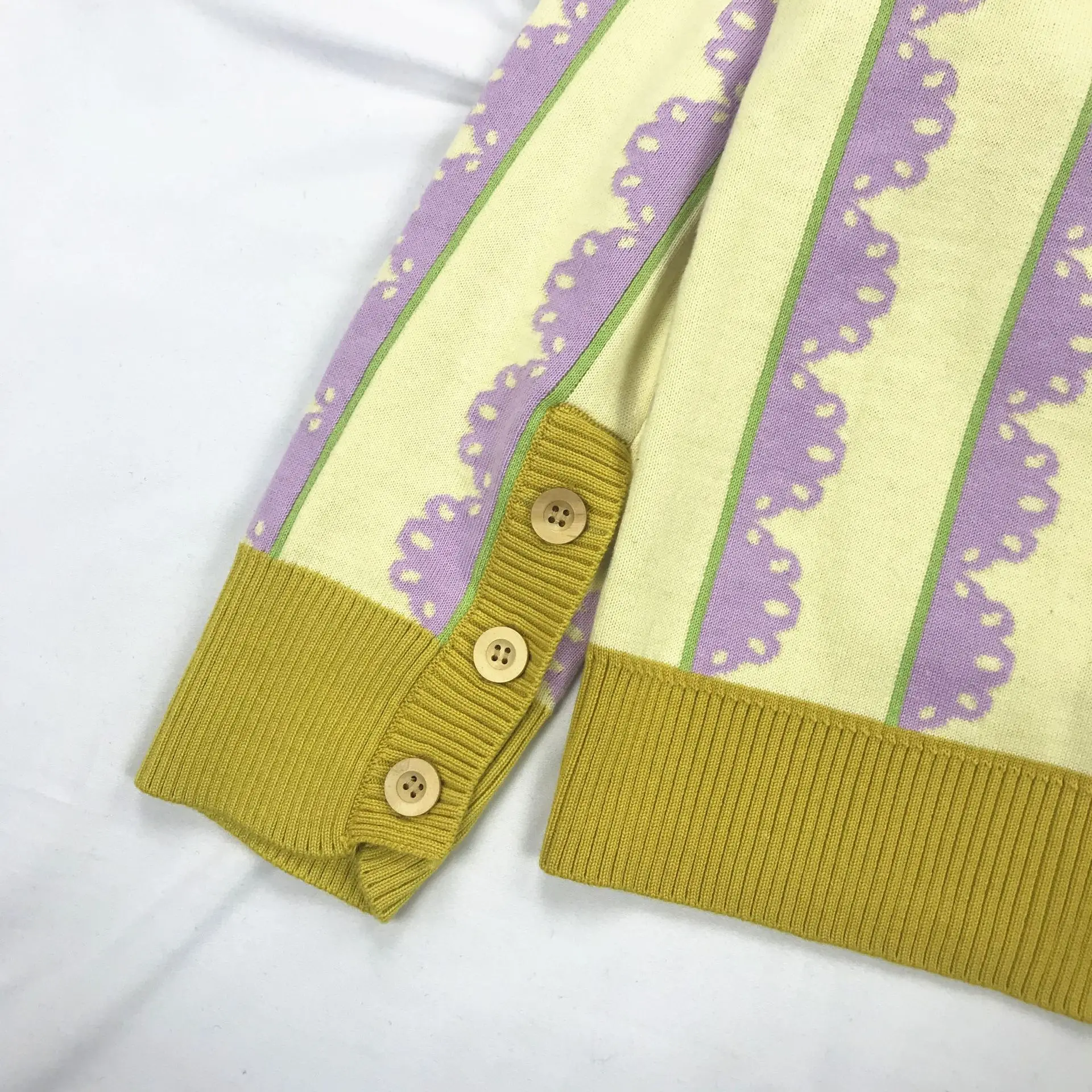 New YUPINCIAGA Lace Flower Thick Double Jacquard Sweater Cardigan Women Embroidery Sweaters Femmf Knit For Femme Sweet Style Jumper