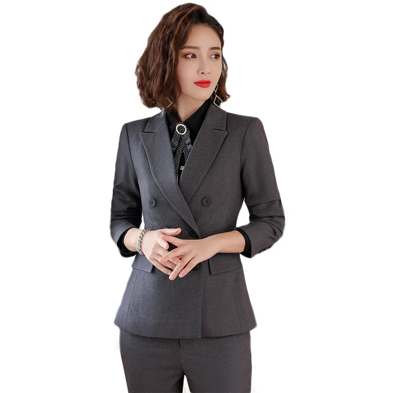 Sale Black Formal Elegant Women's 2 Pieces Set Pants Suits Blazer Jacket Office Lady Work Business Uniform Trousers Clothing blouses
