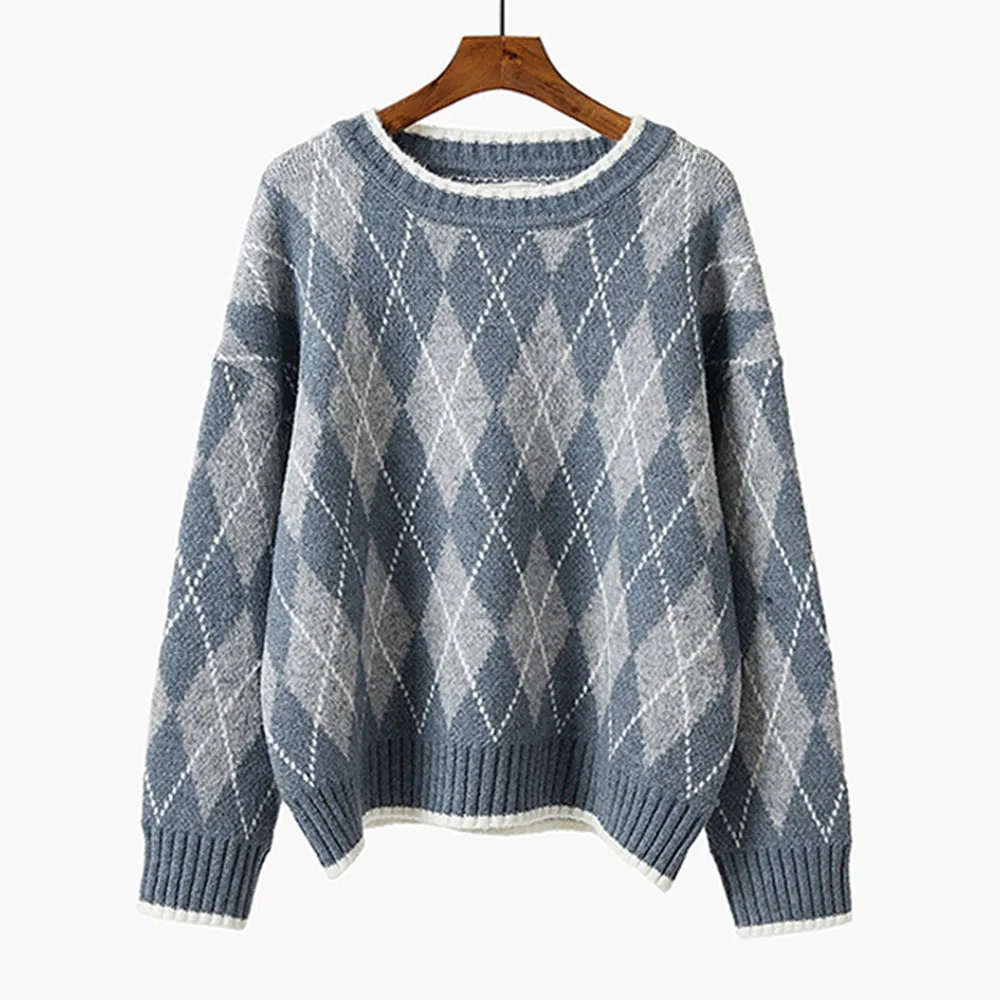 Images of Christmas Sweater Women Jumper Autumn Winter Loose 2019 Lazy Korean Style Xma Pullovers Knitted Sweaters Warmness Geometric Tops :