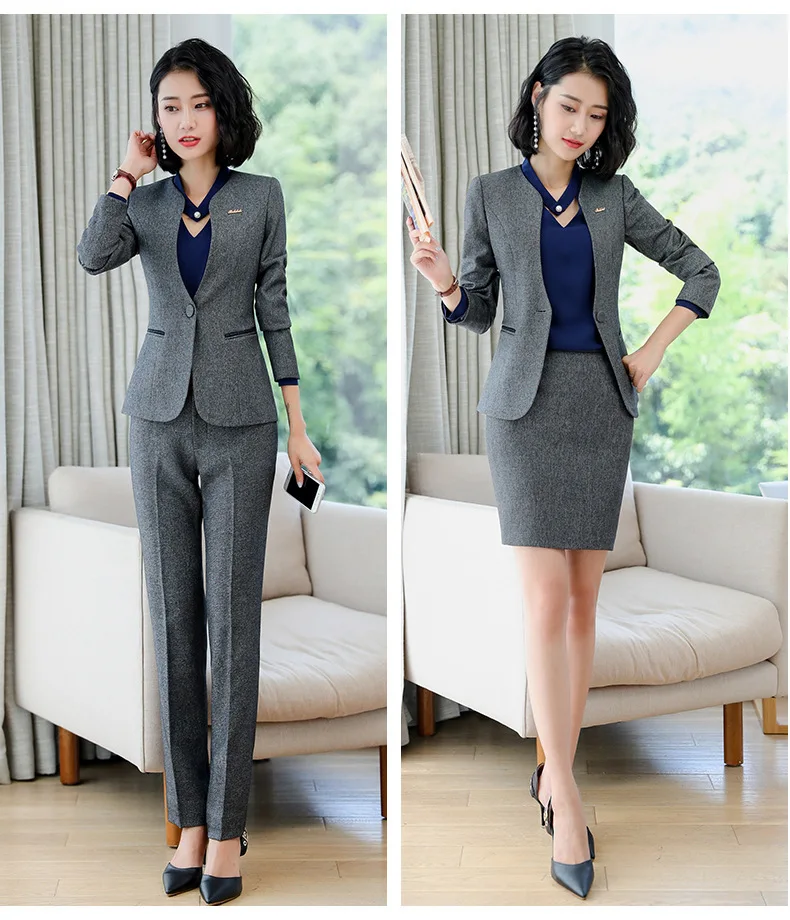 Images of Women's Long Sleeve Blazer Office Work Skirt Suits Fashion Notched ButtonSkirt Suit Slim Jackets Skirts Two Pieces OL Sets :