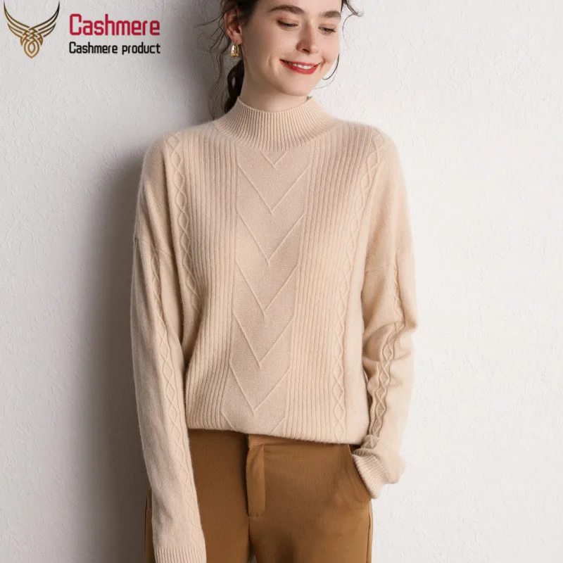 Best Offer Cashmere sweater women's 2019 autumn and winter new 100% pure cashmere half-high collar pullover sweater loose knit warm sweater
