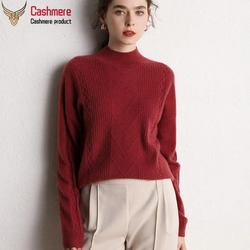 Sale Cashmere sweater women's 2019 autumn and winter new 100% pure cashmere half-high collar pullover sweater loose knit warm sweater