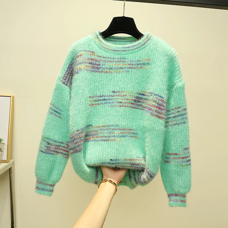 Sale Women rainbow Stripe Long Sleeve Winter Sweaters Ladies O-Neck Pull Hiver Christmas Pullover Jumpers Warm Female Thick Soft Tops