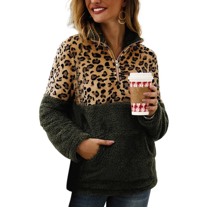 Best Offer Women Autumn Winter Fleece Warm Sweatshirt Fashion Coat Leopard Stitching Long Sleeve Casual Loose Pullovers Tops Outwear