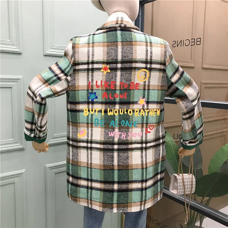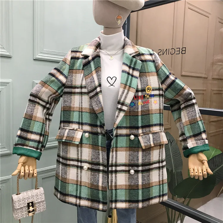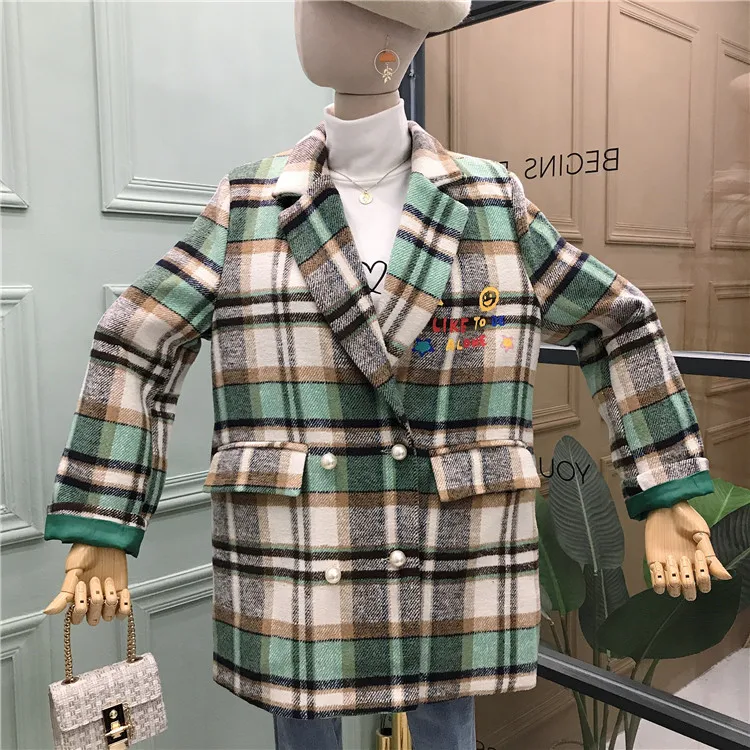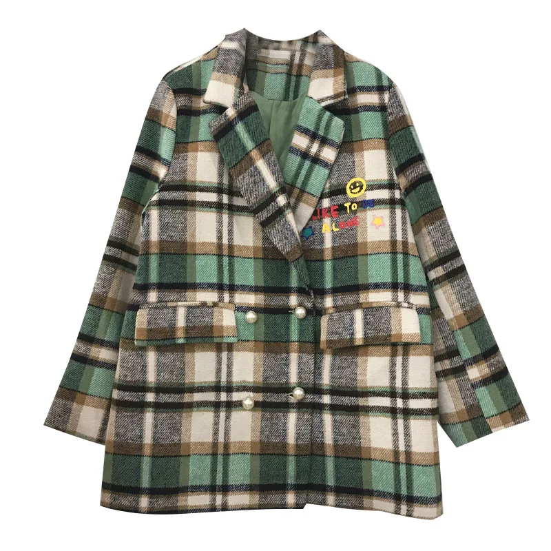 Best Offer Plaid Women Blazers Double Breasted Notched Embroidery Casual Women Blazers and Jackets Korean Fashion Clothing