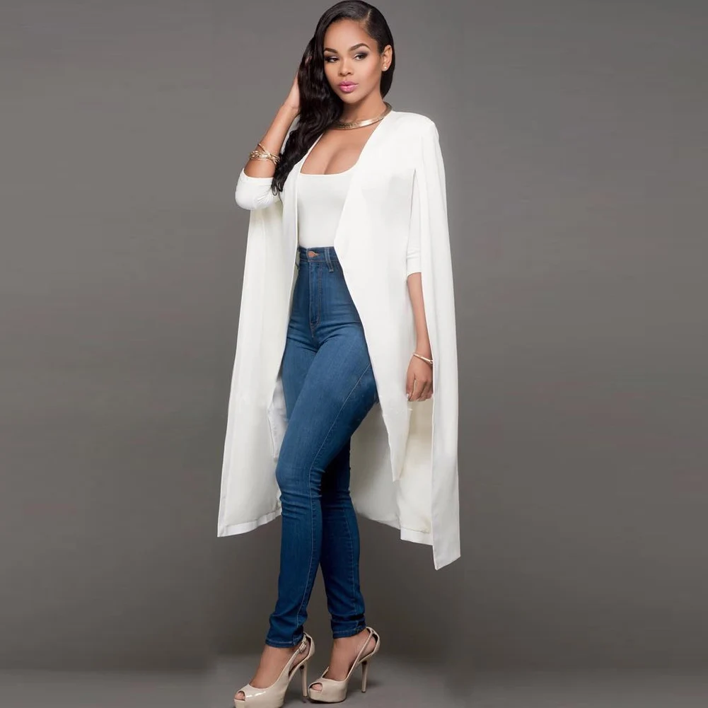 Images of New Womens Loose Long Cloak Blazer Cape Trench Cardigan Coat Open Front Split Sleeve Coat Solid Workwear Fashion :