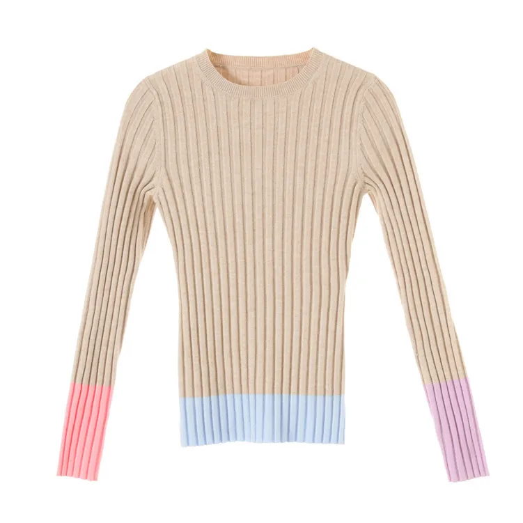 Best Offer Colorblock Sweater 2020 Fall Winter New Slim Long Sleeve Pullover Round Neck Bottoming Black Sweater Women