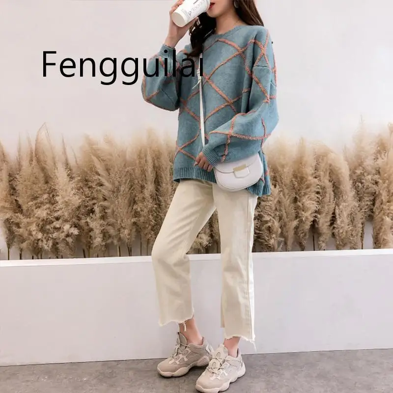 Sale High Quality Beautiful Winter Sweater Women 2020 Loose Kawaii Cute Thicken Warm Knitted Jumper Women Blue Sweater Female