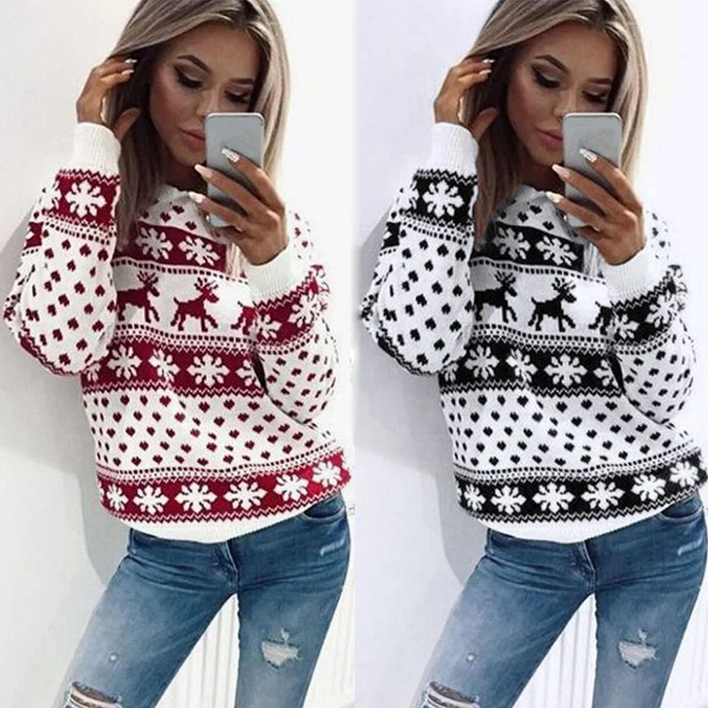 Buy Women Jumper Sweater Pullover Tops Coat Christmas Winter Female Girl Warm Brief Sweaters Clothing