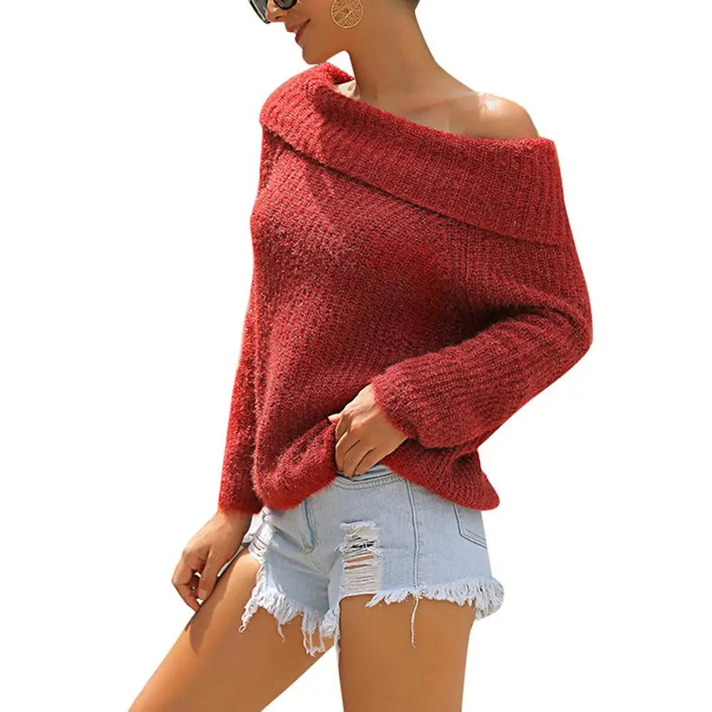 Best Offer Women Sexy One shoulder knitted sweater women Solid Long Sleeve Pullovers Female Jumper Warm Ladies Autumn Winter Minimalist