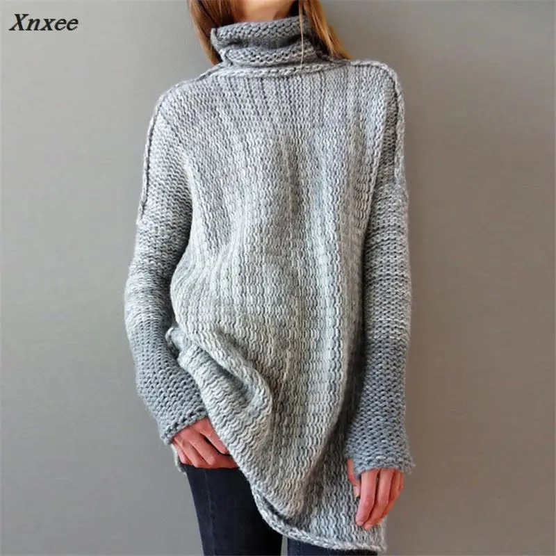 Best Offer Xnxee S-3XL Turtleneck Sweaters European Spring New Fashion Patchwork Women Knitwear Casual Loose Long Sweater 67052