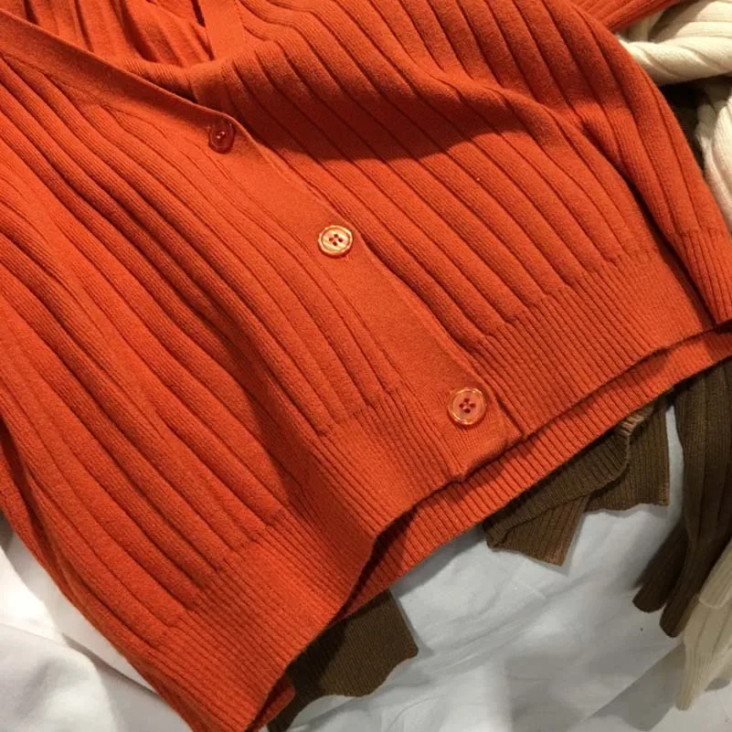 Images of 2019 Korean Autumn Spring Clothes Women Loose Long Sleeve Short Outerwear Solid Color Knitted Sweater Casual Cardigan :