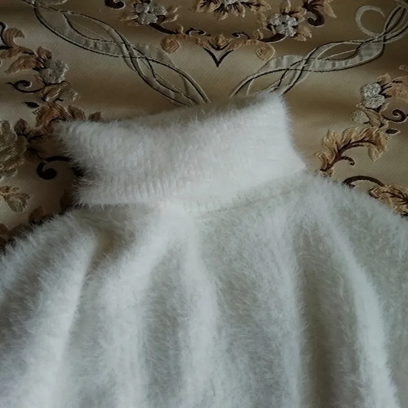 Images of White Faux Mink Cashmere Long Sleeve Turtleneck Sweater Sexy Women 2019Autumn Winter Basic Warm Jumper Pullover Pull Femme Hiver :