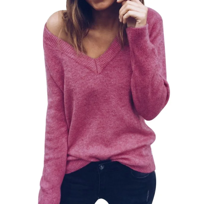 Images of JODIMITTY Women Sexy V Neck Knitted Sweaters Autumn Winter Solid Long Sleeve Pullovers Female Thin Jumpers Sweater Clothing Top :