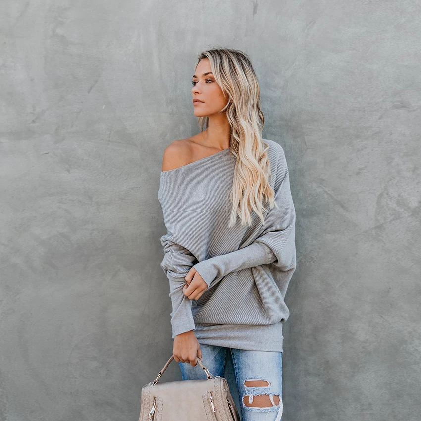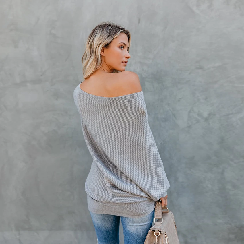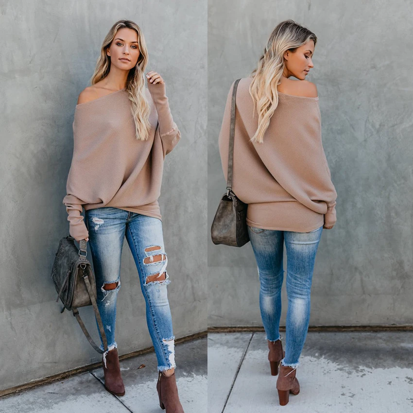 Images of New Fashion 2019 Autumn Woman Sweaters Slash Neck Long Sleeve Pullover Off Shoulder Knitted Sweater Winter Female Daily Pullover :