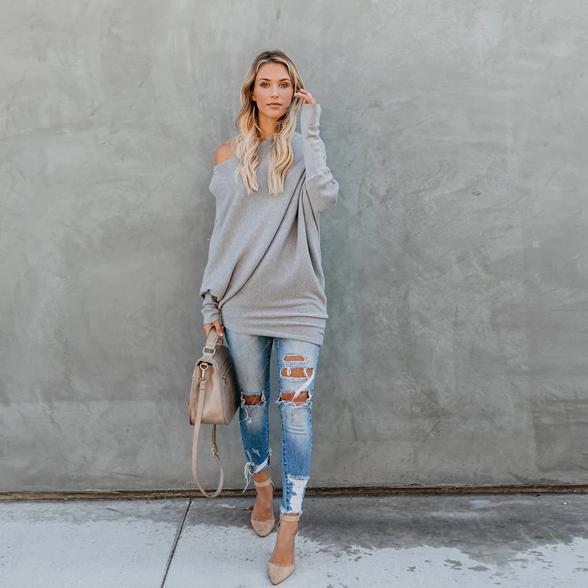 New New Fashion 2019 Autumn Woman Sweaters Slash Neck Long Sleeve Pullover Off Shoulder Knitted Sweater Winter Female Daily Pullover