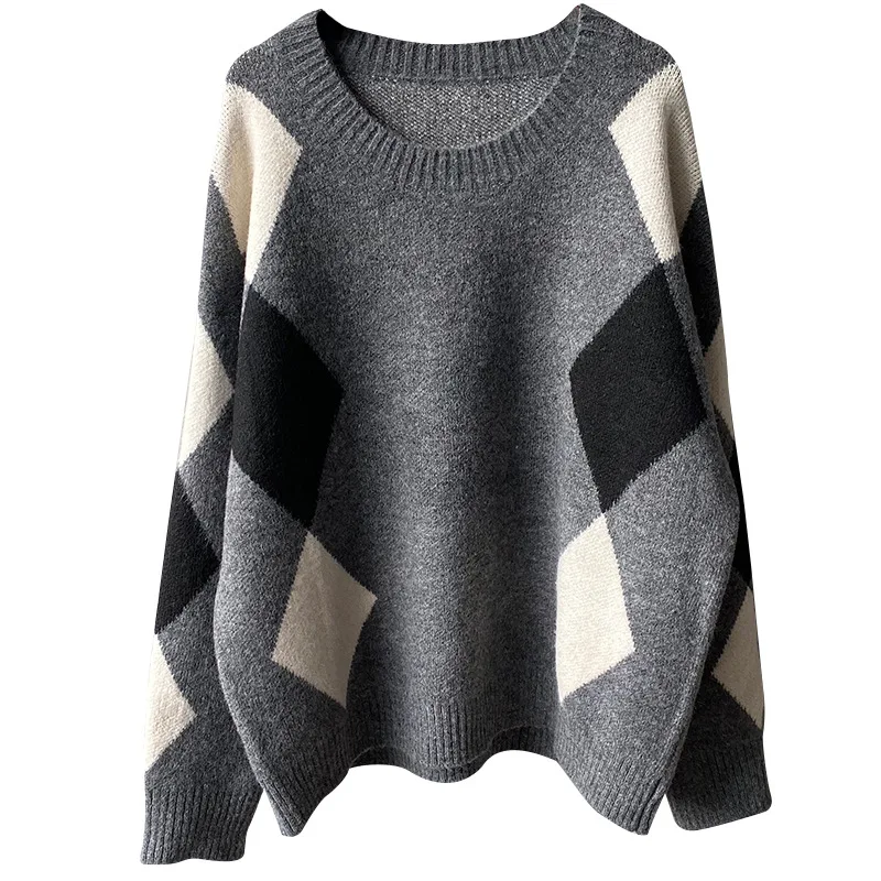 Images of New sweater women autumn and winter Korean version of the sleeve sweater loose lazy wind diamond pattern women sweater top :