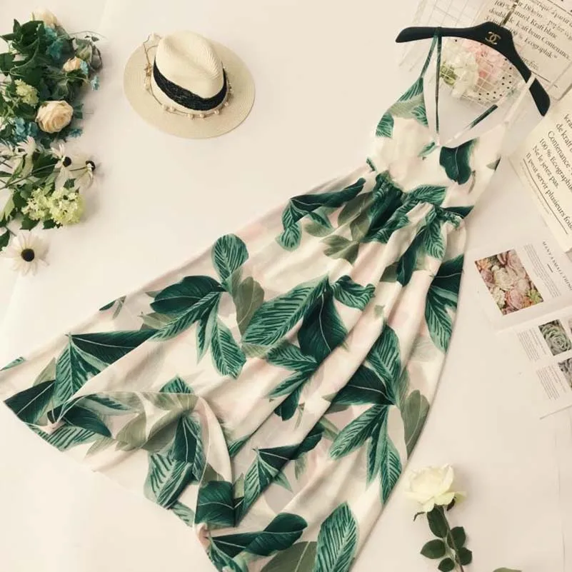 Sale Summer Bohemian Beach Long Dress Chiffon Women Clothing V Neck Sleeveless Backless Bandage Sexy Club Party Dresses Female