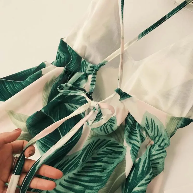Images of Summer Bohemian Beach Long Dress Chiffon Women Clothing V Neck Sleeveless Backless Bandage Sexy Club Party Dresses Female :