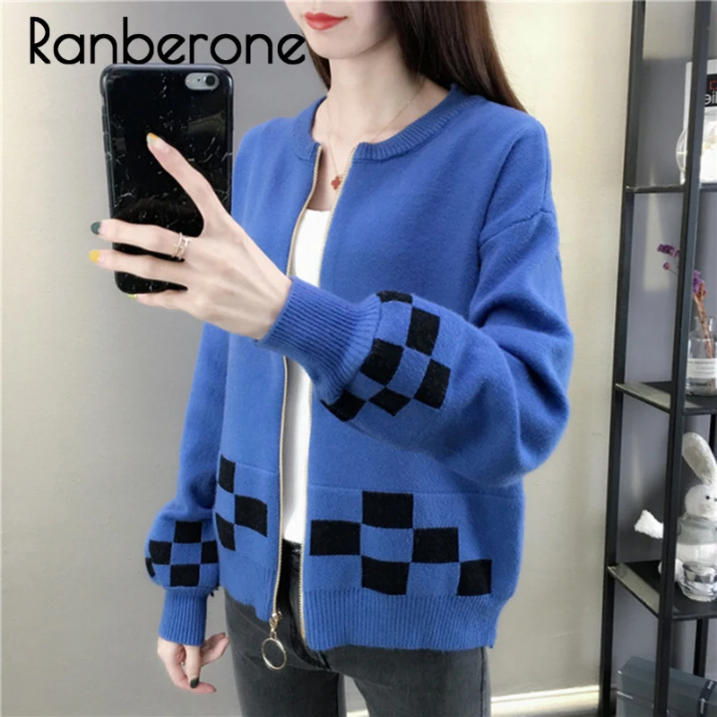 New Zipper Cardigan Women 2019 New Autumn Winter Korean Long Sleeve Sweater Cardigan Female Knitted Jacket Sweater Coat Women Blue