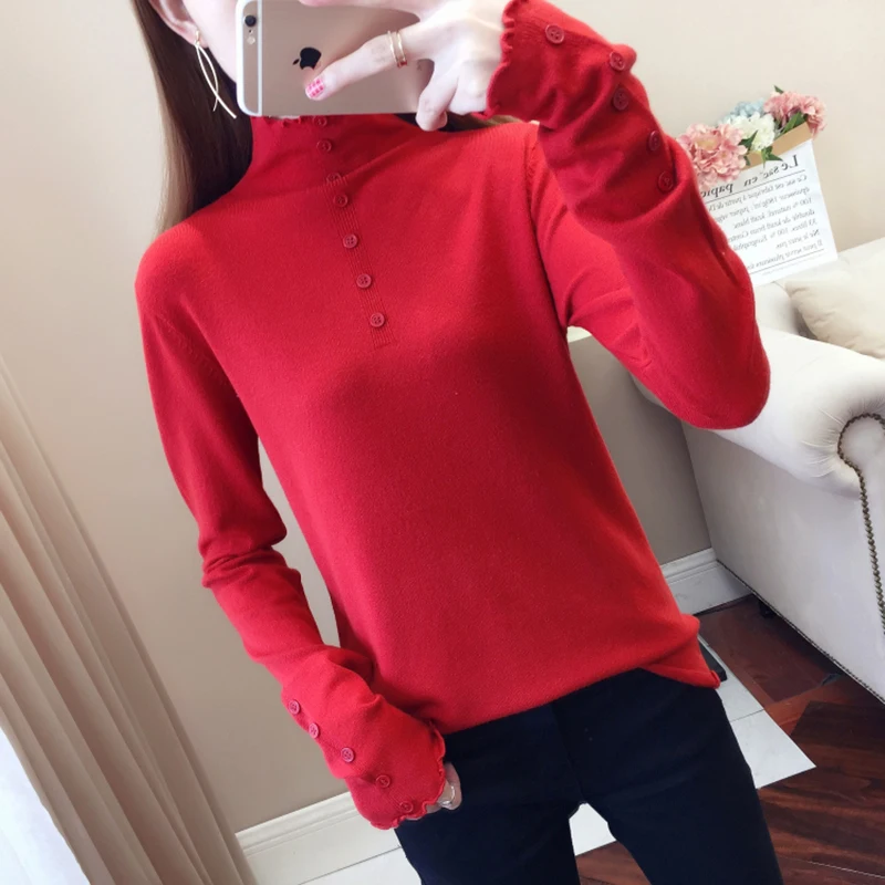 Promo 6 Colors Kintted Turtleneck Women Sweater Solid Color Long Sleeve Jumper Korean Fashion Autumn Winter Pullover Beige Blue Red